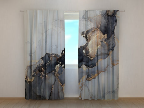 Fotogardine Luxuriöser Marmor in Schwarz, Grau und Gold