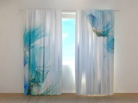 Fotogardine Türkisgrünes Aquarell mit goldenen Linien