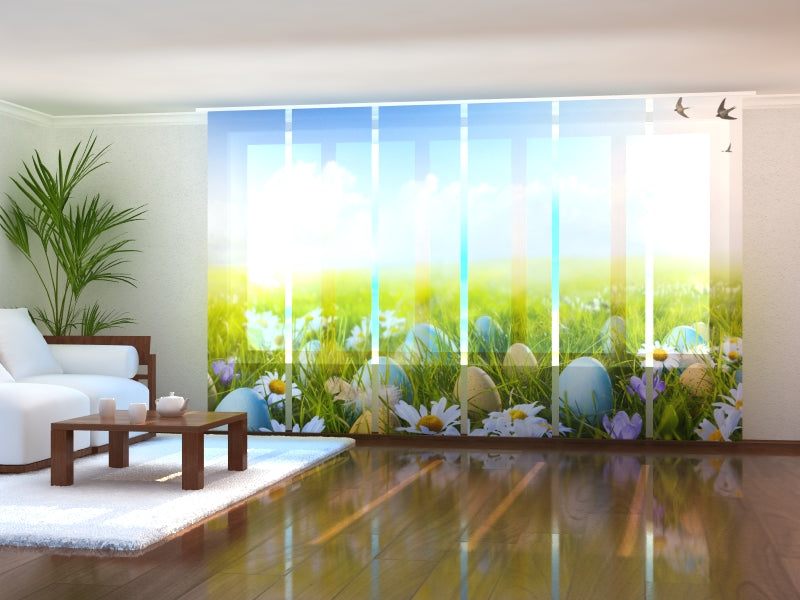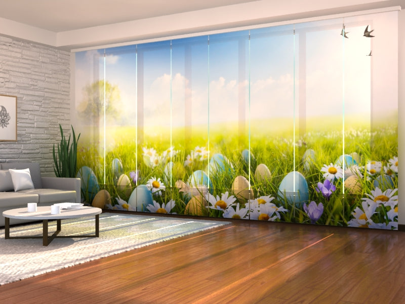 Schiebegardinen Ostereier auf dem Blumenfeld