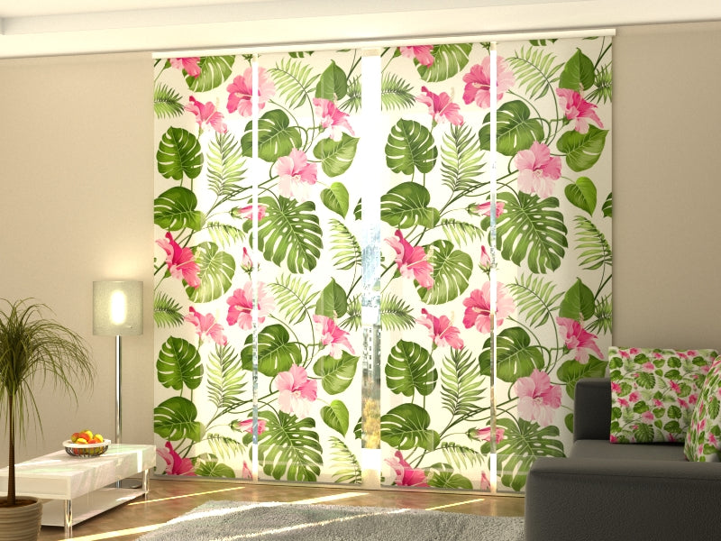 Schiebegardinen Tropische Blumen auf dem Weiß
