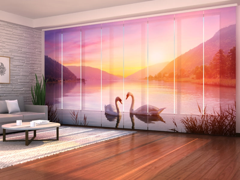 Schiebegardinen Schwäne auf dem See bei Sonnenaufgang
