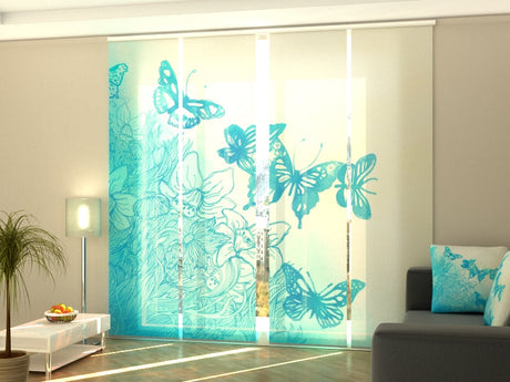 Schiebegardinen Abstraktes Blumenmuster in Schwarz und Weiß