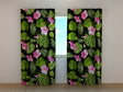 Fotogardine Tropische Blumen auf dem Schwarzen