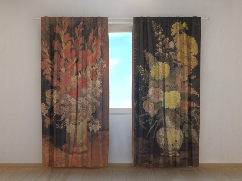 Fotogardine Vase mit Astern, Salvia und anderen Blumen Vincent van Gogh