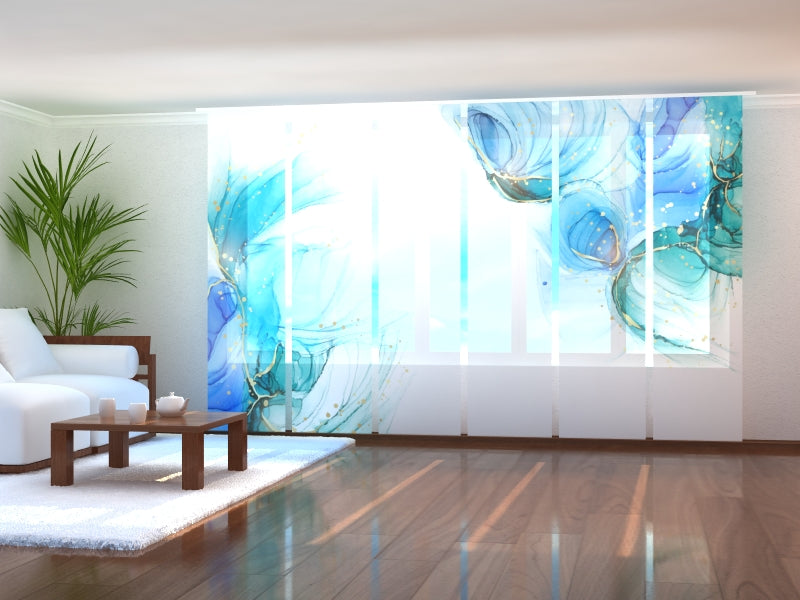 Schiebegardinen Türkisgrünes Aquarell mit goldenen Linien