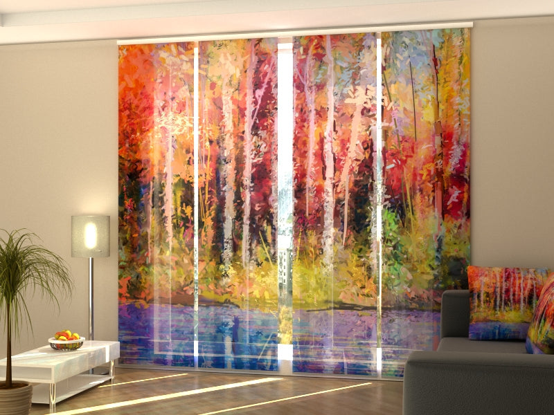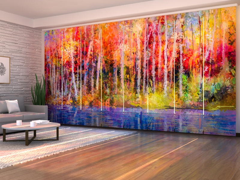 Schiebegardinen Ölgemälde bunte Herbstbäume