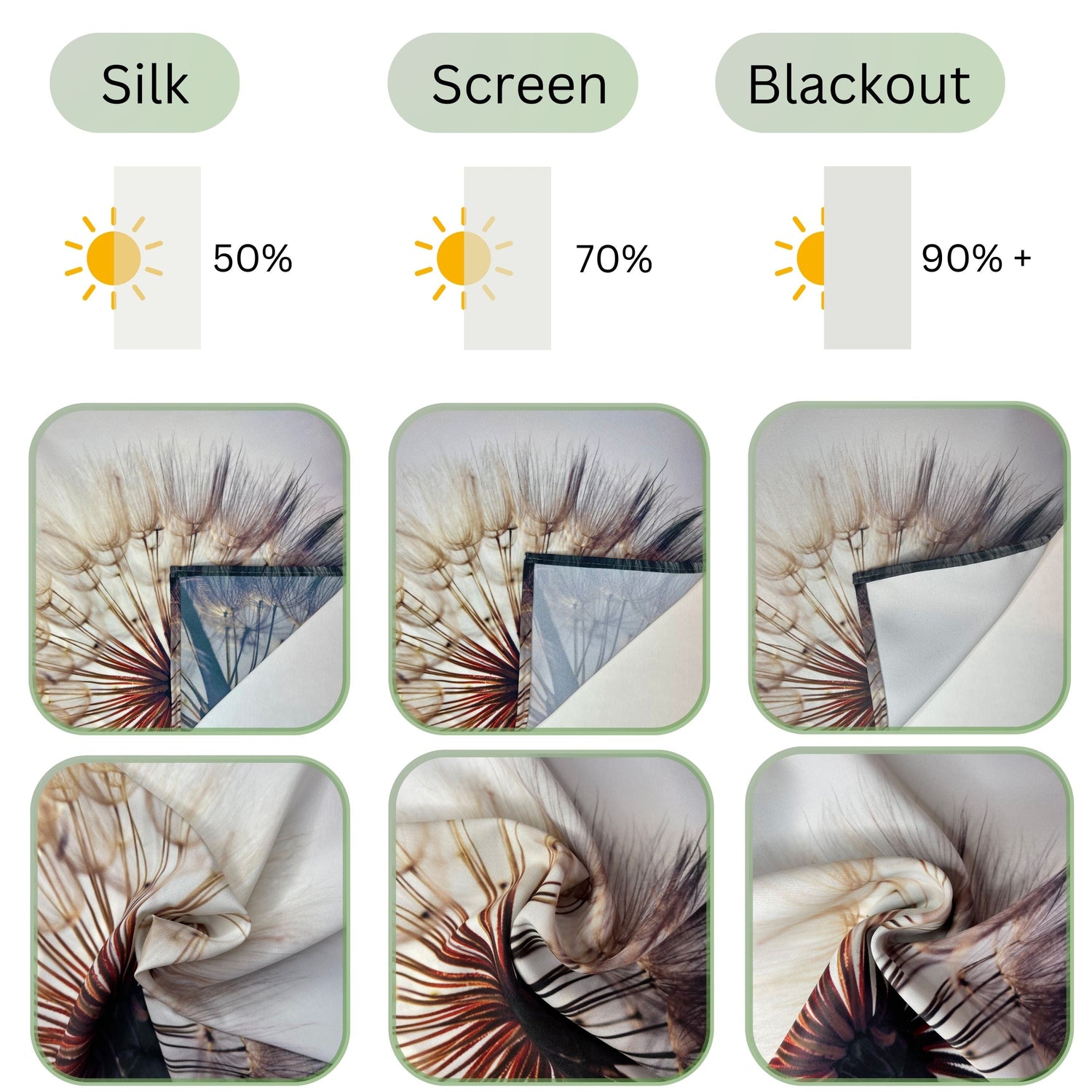 S​ILK ist ein seidiger Stoff von höchster Qualität, angenehm und weich im Griff. Vorhänge mit Schiebepaneelen sehen in diesem Stoff großartig aus. Darüber hinaus verfügt der Stoff über eine hervorragende Farbwiedergabe. Auf der Rückseite ist der Aufdruck zu 90 % sichtbar. Die Deckkraft beträgt 50 %. Stoffdichte 60 g/m2.